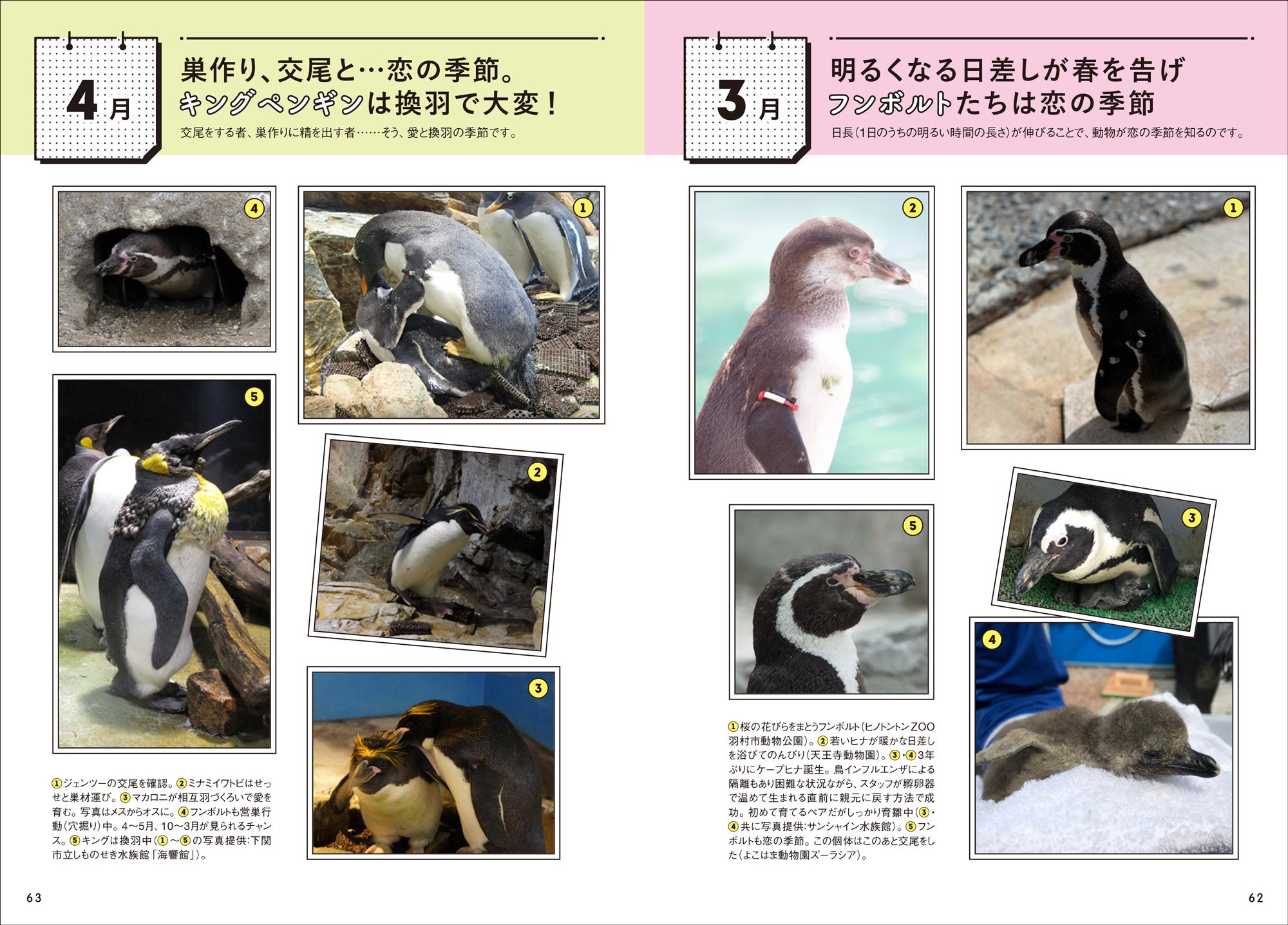 日本で暮らせば、ペンギンも日本の四季に合わせて恋や子育てをするように。国内で飼育されているペンギンたちの1年を、換羽、ヒナ誕生など、貴重な写真いっぱいでご紹介しています。