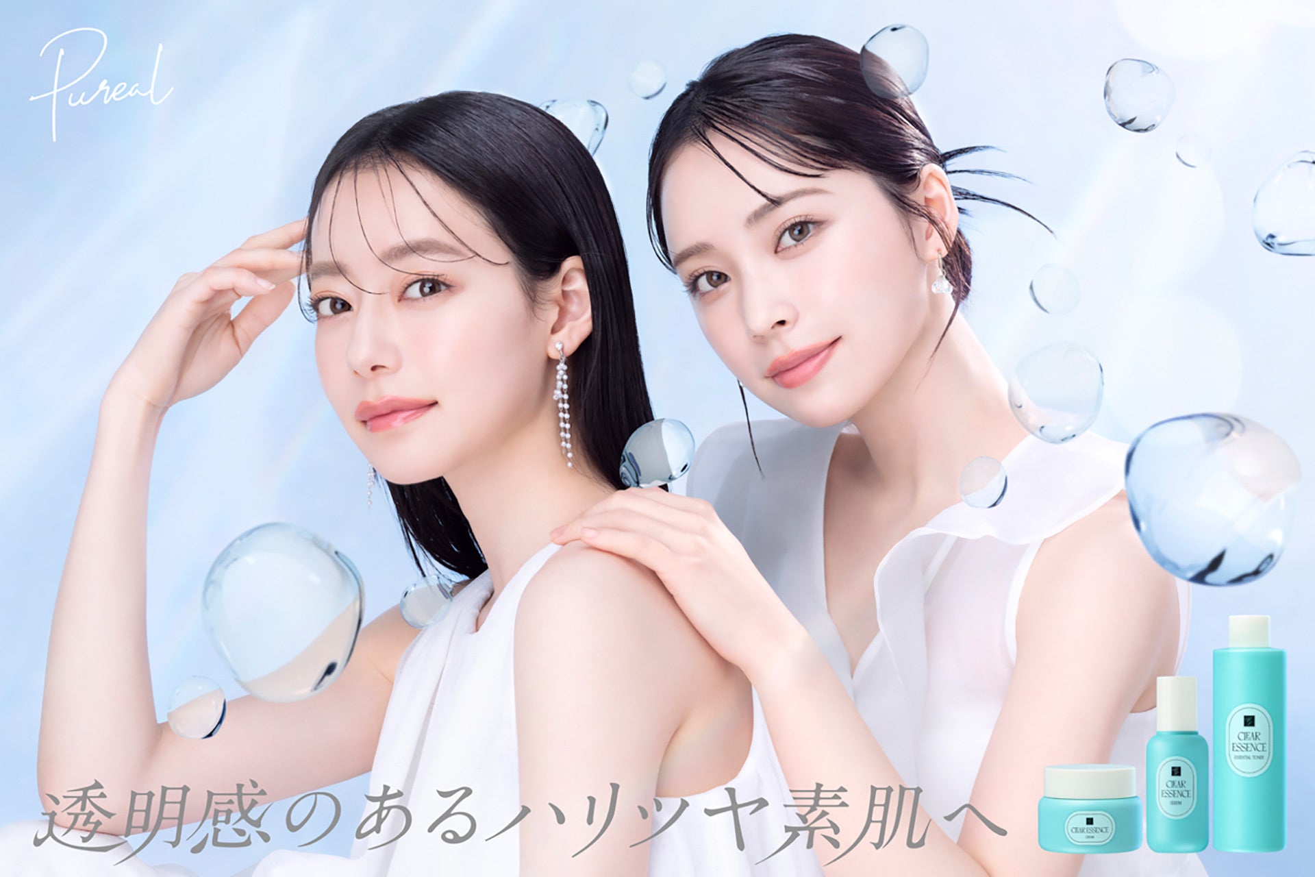 新ビジュアルでは「なごみさん」と「那須ほほみさん」の解き放つクリアな透明感を生かし、クリアエッセンス スキンケアシリーズのコンセプトである「透明感*のあるハリツヤ素肌」を表現しています。