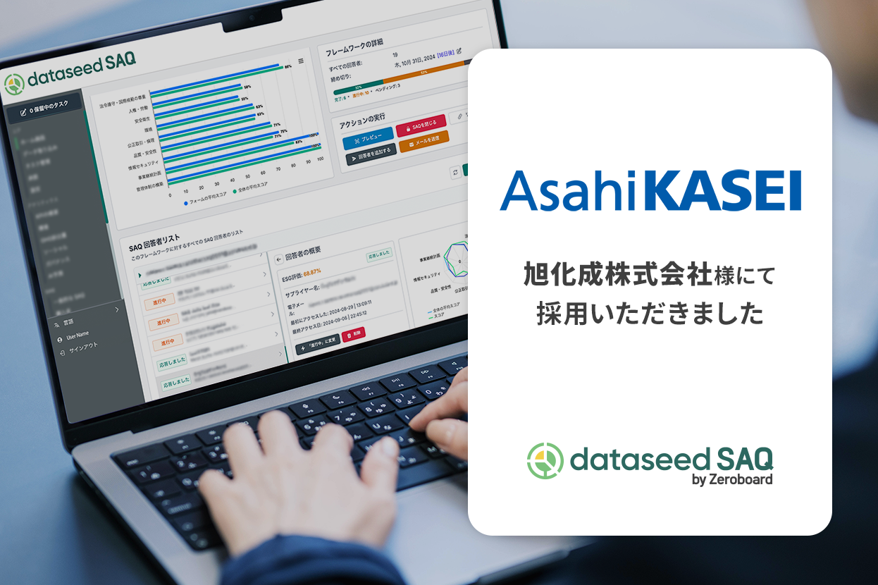 企業のサステナビリティ経営を支援する株式会社ゼロボード(東京都港区、代表取締役:渡慶次道隆、以下 当社)は、旭化成株式会社(東京都千代田区、代表取締役社長:工藤幸四郎、以下 旭化成)にて、責任ある調達を実現するためのアンケート送付・回答の効率化プラットフォーム「Dataseed SAQ」が採用されたことをお知らせします。