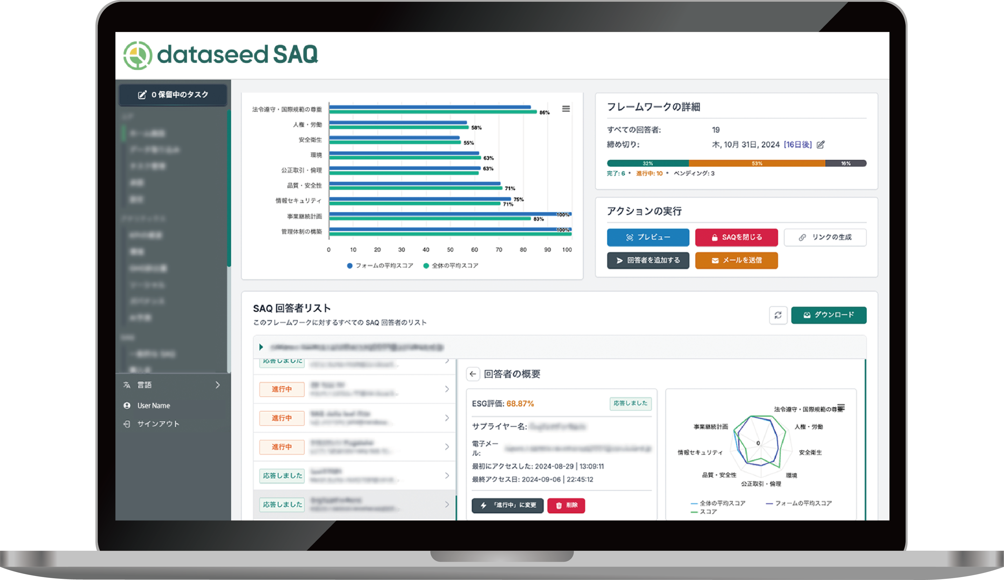 アンケート送付・回答 効率化プラットフォーム「Dataseed SAQ」
