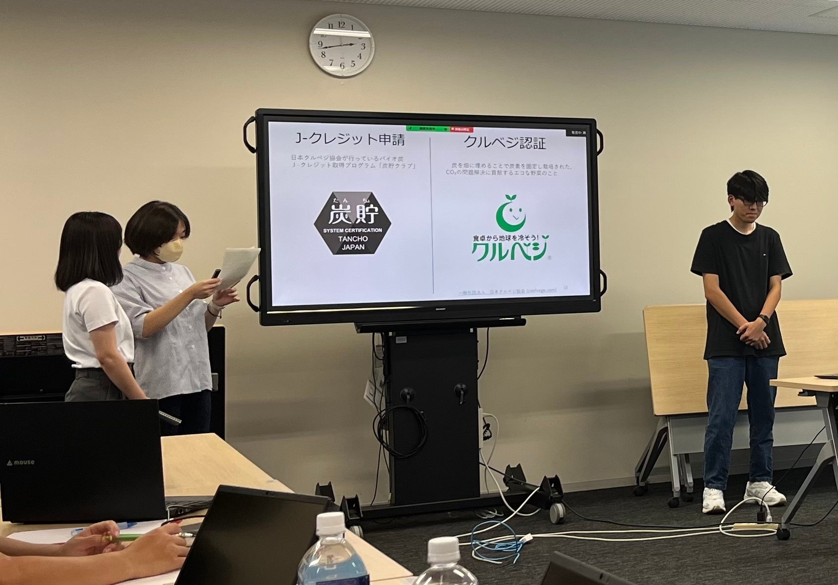 Jクレジット1トンの創出という成果を前に、学生たちはその扱いについて議論を重ねました。最終的に選ばれたのは、売却ではなく、地域企業への寄付という選択でした。この判断は、Jクレジットが本来「取引可能な環境価値」であることを十分に理解したうえで、あえてなされたものです。学生たちは、削減量を金銭的価値として回収することよりも、地域の中で環境価値を循環させ、次の実践につなげることに重きを置きました。