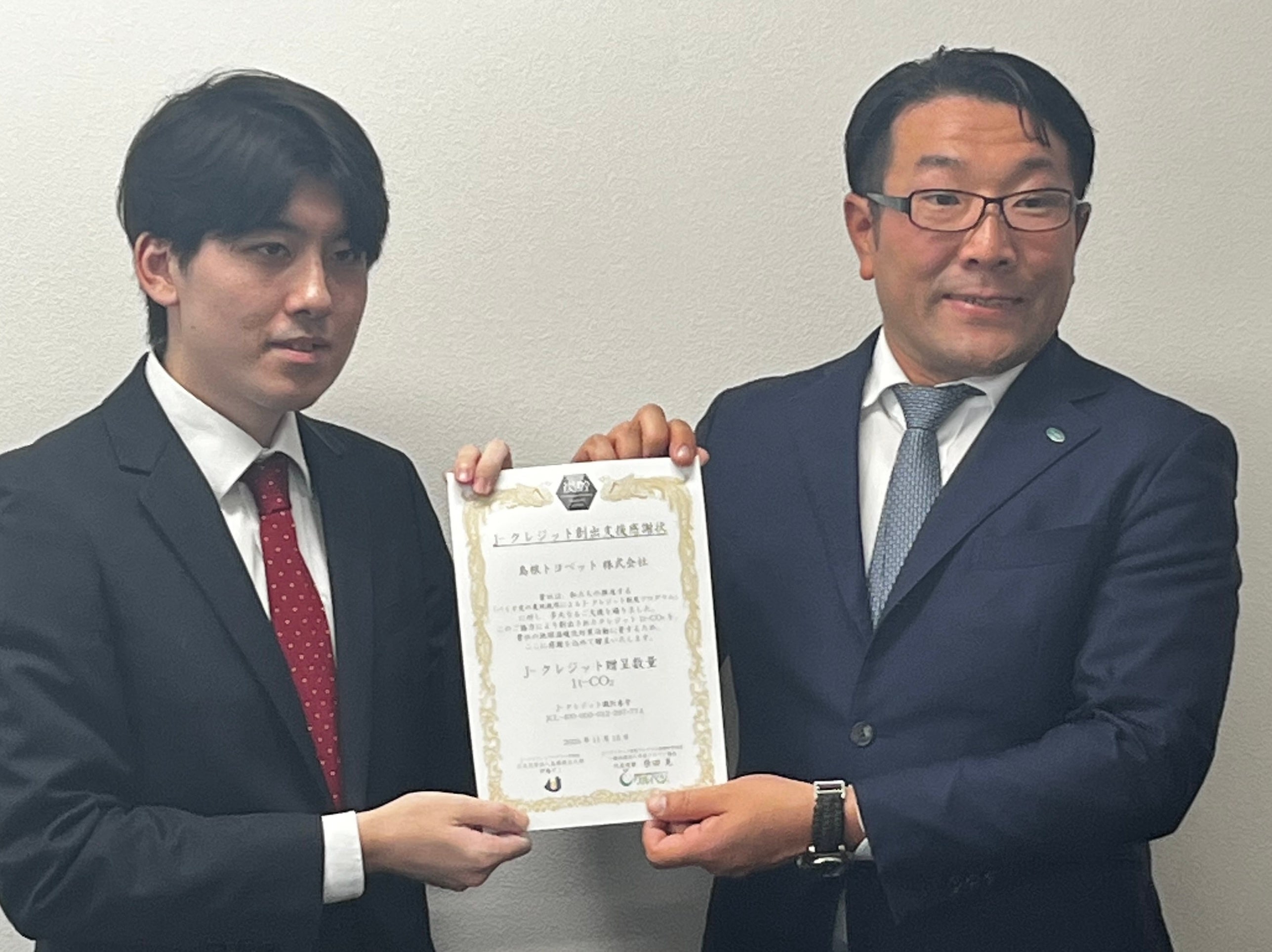 現在、本プロジェクトは次のフェーズへと移行しており、寄付されたJ-クレジットを地域のためにどのように活用するかについて、島根トヨペット株式会社と学生による検討・協議を継続しています。本プレスリリースは、寄付の完了と、それに続く活用策検討の開始をご報告するものです。