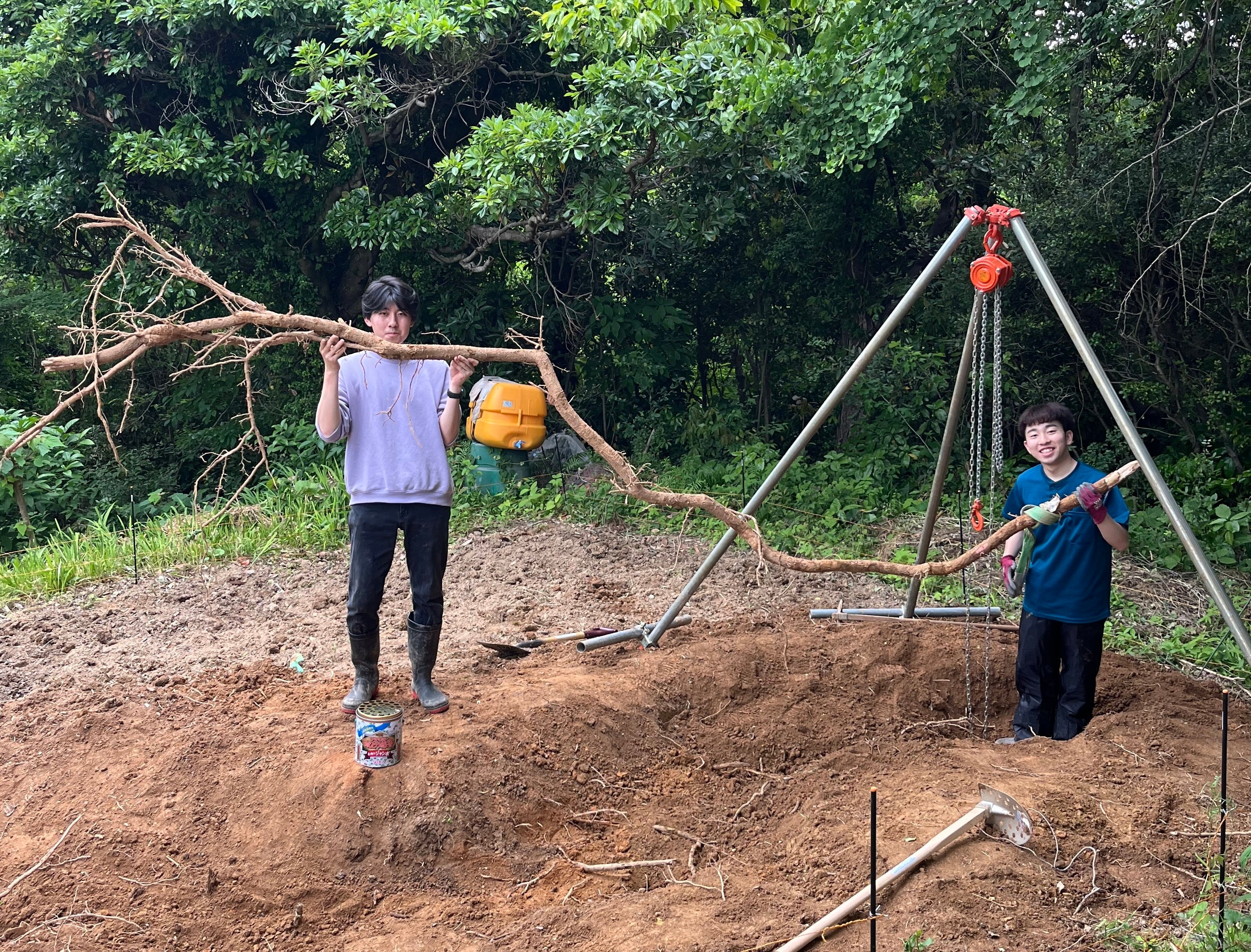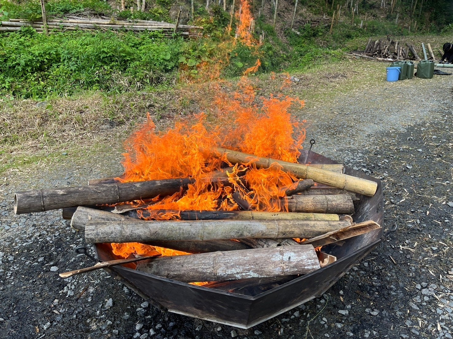 バイオ炭の製炭にあたっては、大田市大森地区の地域企業である中村ブレイス専務取締役・中村哲郎氏が、竹の伐採作業を実務面で支援するとともに、炭焼きの場として敷地(駐車場)を提供しました。研究のために新たな設備を設けるのではなく、地域に既にある空間や関係性を活用することで、研究実装が進められました。