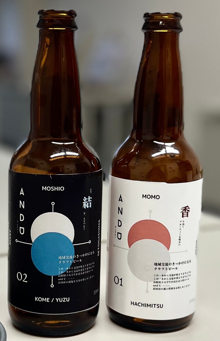 1年目には、地域資源を用いたクラフトビールを、地域企業・石見麦酒の協力のもとで製造・販売しました。この年の主眼は、Cause-Related Marketing(CRM)の視点から、環境・社会的価値が市場においてどの程度「価格として評価されうるのか」を検証することにありました。単なる商品開発や広報にとどまらず、研究として検証可能な形で価値を測定することを目的としています。具体的には、大学の教育・研究活動を支援するというコーズ(Cause)を設定し、商品購入を通じて社会的価値を提示した場合と、提示しない場合とで、消費者の支払い意思額(WTP:Willingness to Pay)がどのように変化するのかを分析しました。検証にあたっては、仮想評価法(CVM)および選択型コンジョイント分析を用い、学生・教職員・関係者を対象としたアンケート調査を実施しました。