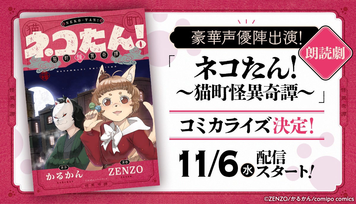 人気声優鈴原希実、伊達さゆり、吉武千颯ら出演で話題の朗読劇『ネコたん!~猫町怪異奇譚~』が漫画化決定! 『comipo』等で先行配信!