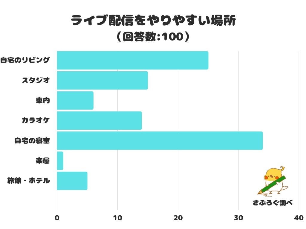 家族と一緒に住んでいる人は自宅の寝室が一番落ち着いて配信できる場所だという事が分かります。