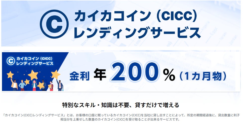 株式会社カイカフィナンシャルホールディングスでは、「第4回カイカコイン(金利 年 200% 1ヵ月もの)レンディングサービス」を実施する予定です。