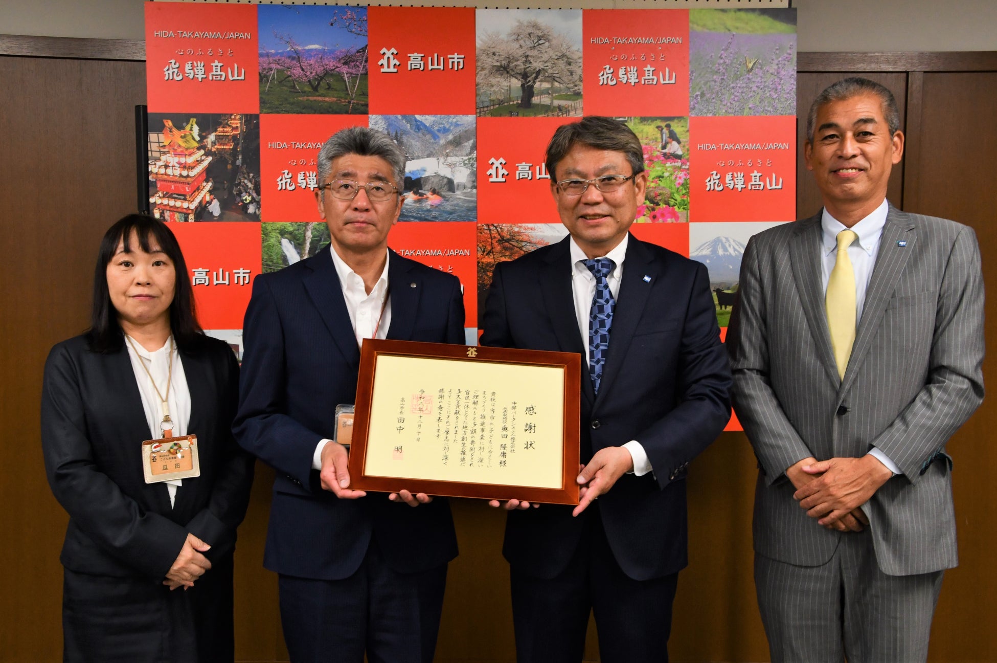 寄附企業として、高山市公式ホームページや内閣府のサイトに企業名が掲載されるほか、市からの感謝状贈呈など、企業イメージ向上やPR効果も期待できます。
