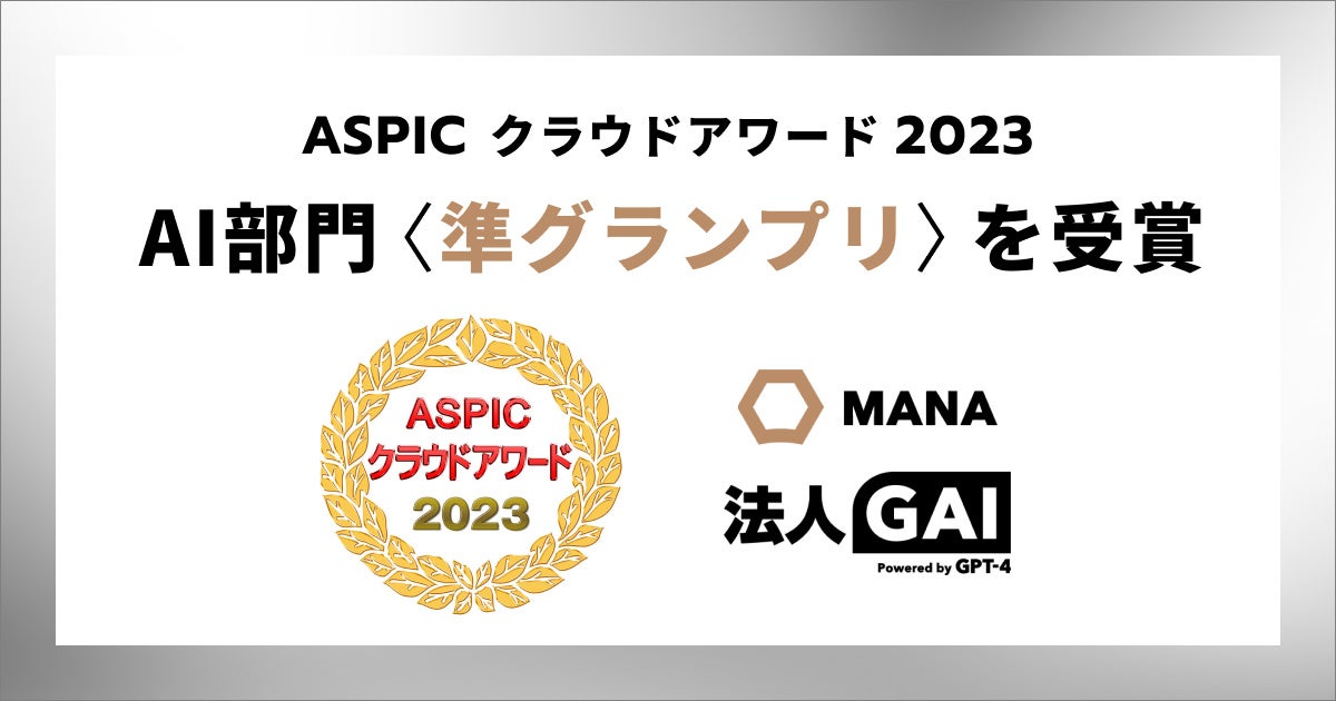 ギブリーの「法人GAI」、ASPICクラウドアワード2023 AI部門で〈準グランプリ〉を受賞