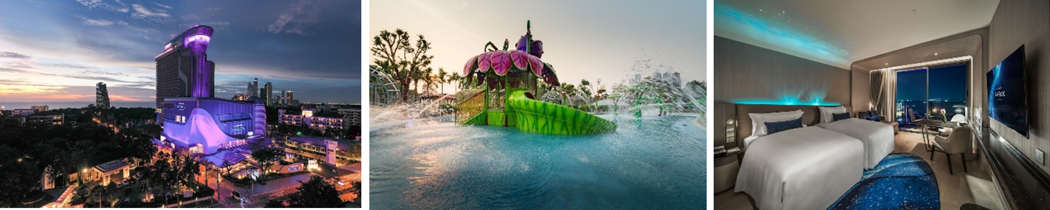2022年8月にオープンした「グランデ センター ポイント スペース パタヤ」は、タイで初の「宇宙」をテーマにしたホテルで、スペースシャトルをイメージした外観や、宇宙をイメージしたデザインの客室があります。また、1万2千㎡もの広さを誇る宇宙ウォーターパークや大人から子どもまで楽しめる屋内プレイグランドなども併設しており、ファミリーにもおすすめのホテルです。