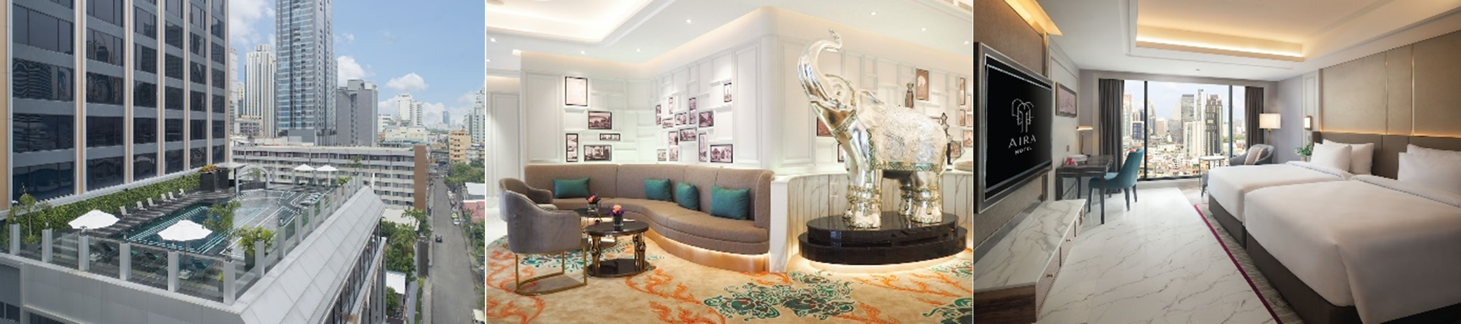 2022年7月にオープンした「アイラ ホテル バンコク」は、ホテルやレストランで賑わうエリア、「スクンビット ソイ 11」沿いにあるホテルです。約92mの高さにある屋上には海水プールがあり、バンコクにいながらも海水浴の雰囲気を楽しめます。また、ロビーにはアートギャラリーがあり、タイ全土から集めた昔のバンコクの風景写真などが展示されており、タイの歴史に触れることもできます。