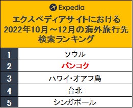 エクスペディアサイトにおける2022年10月~12月海外旅行先検索ランキング2位のバンコクへお得に旅行