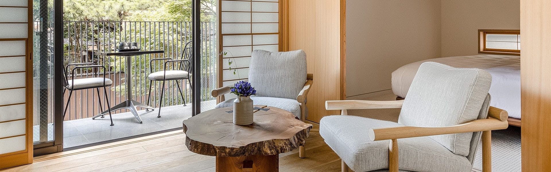 古美術の街としても知られている新門前通りに位置し、清らかな水が流れる祇園白川の傍らにひっそりと佇むラグジュアリーブティックホテルです。現代建築家の安藤忠雄氏が、和の心が息づく伝統的な日本の旅館にインスピレーションを受け、現代の旅行客のためにデザインしています。全9室のお部屋は、白川を望むベランダを備えたスイート仕様。優雅なひとときをお過ごしいただけます。
