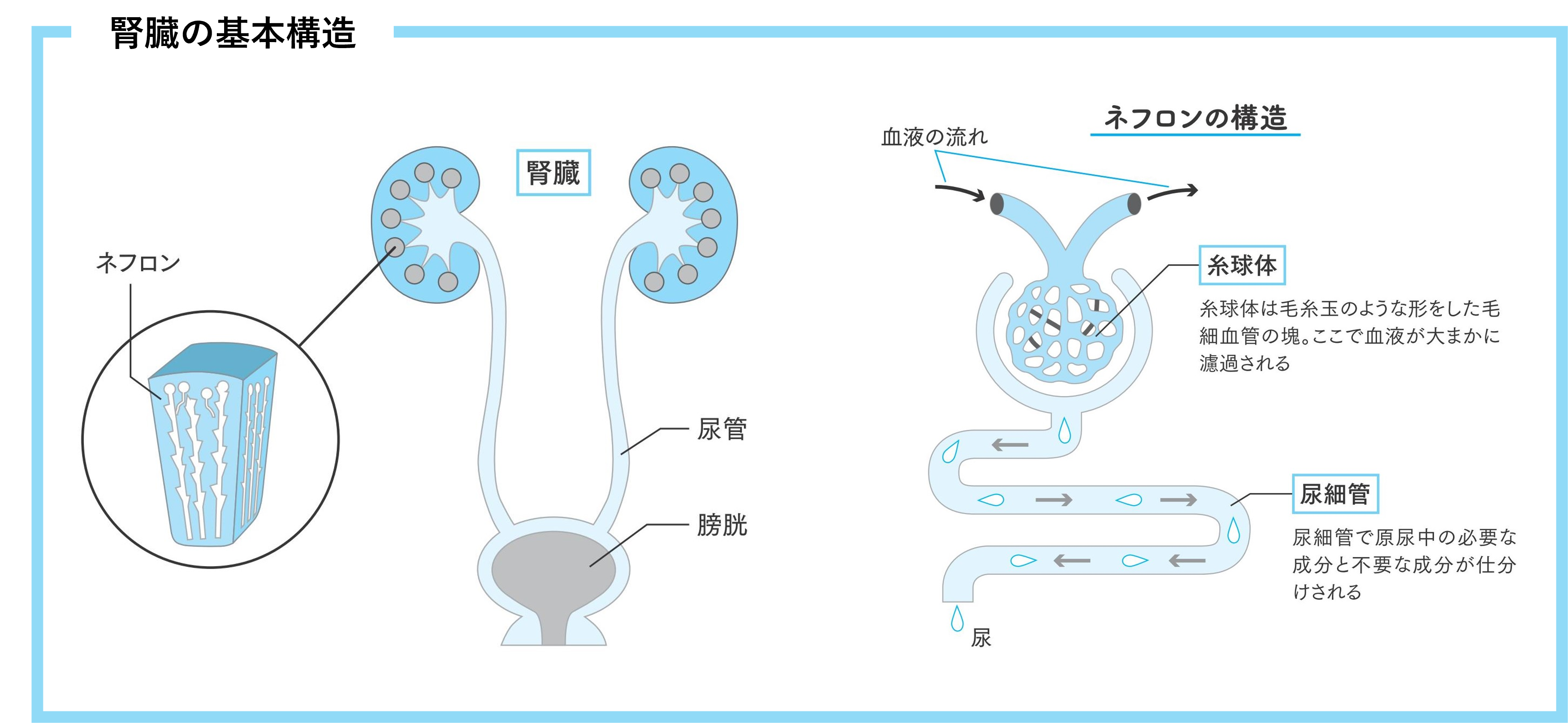 腎臓に流れ込んでくる大量の血液を濾過しているのが「ネフロン」です。腎臓ひとつにつき約100万個あるネフロンは、いわば“消耗品”。20歳を過ぎたあたりから、その数が少しずつ減り始めます。腎機能の低下は、20代ですでに始まってしまっているのです。