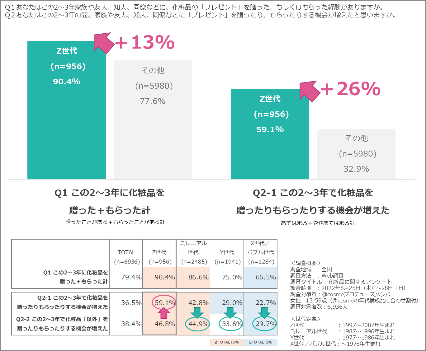 1. Z世代を中心に コロナ禍での化粧品プレゼント機会が増加