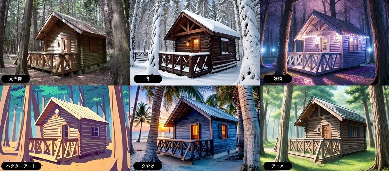 生成 AI 技術により、風景の建物などを残したまま、季節や周りの環境を自由に変えることができる機能です。既存のプリセットからスタイルを選ぶか、もしくはイメージをテキストで入力すると、それに合わせてAI が画像を生成します。