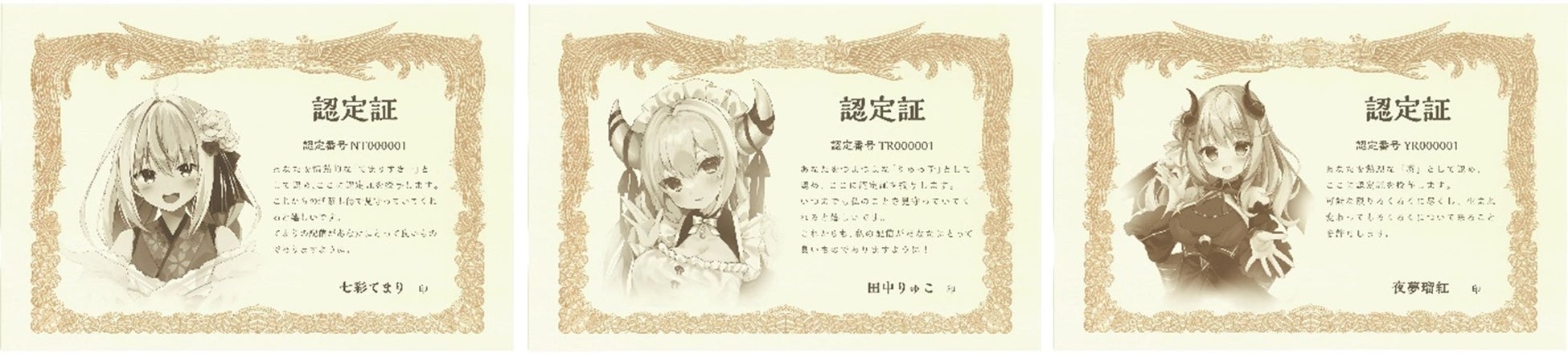 第1期生メンバー七彩てまり(なないろてまり)、田中りゅこ(たなかりゅこ)、夜夢瑠紅(よるむるく)の3名のイメージに沿ったボディカラーとキャップカラーの組み合わせで、3名のキャラクターの世界観を表現しました。