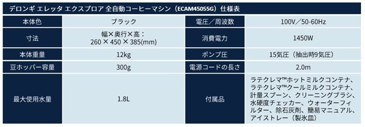 特設HP: https://barista.delonghi.co.jp/products/ecam45055g.html