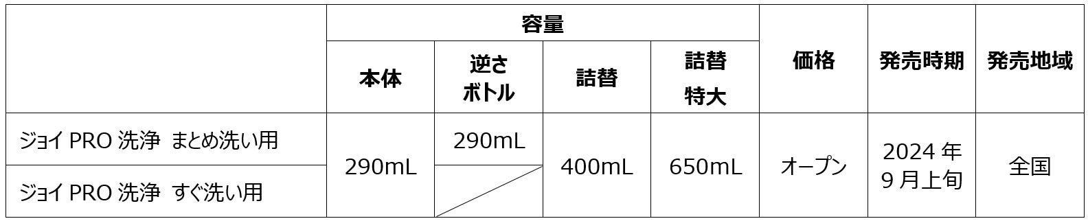 P&Gジャパン(本社:神戸市)は、食器用洗剤ブランド『ジョイ』から、日本の消費者の2通りの食器洗い習慣それぞれに合わせて開発した「ジョイPRO洗浄 まとめ洗い用」と「ジョイPRO洗浄 すぐ洗い用」を、2024年9月上旬より全国で新発売いたします。