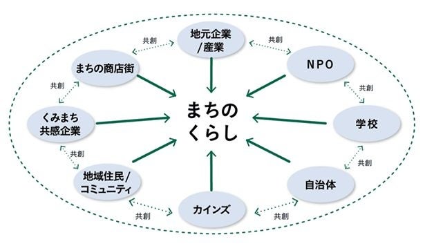 創業以来、「商業を通して社会の発展に貢献する」ことを志に、それぞれの店舗が、それぞれの地域の皆様のくらしに寄り添いながら事業活動を行っている、カインズならではの構想です。店舗やそこで働くメンバー(従業員)がハブとなり、それぞれの地域における困りごとや関心、ニーズに丁寧に耳を傾け、くらしに携わる様々なステークホルダーと協働/共創することで、人々が自立し、共に楽しみ、助け合える、“一人ひとりが主役になれる「まち」(≒地域社会)”の実現を目指します。