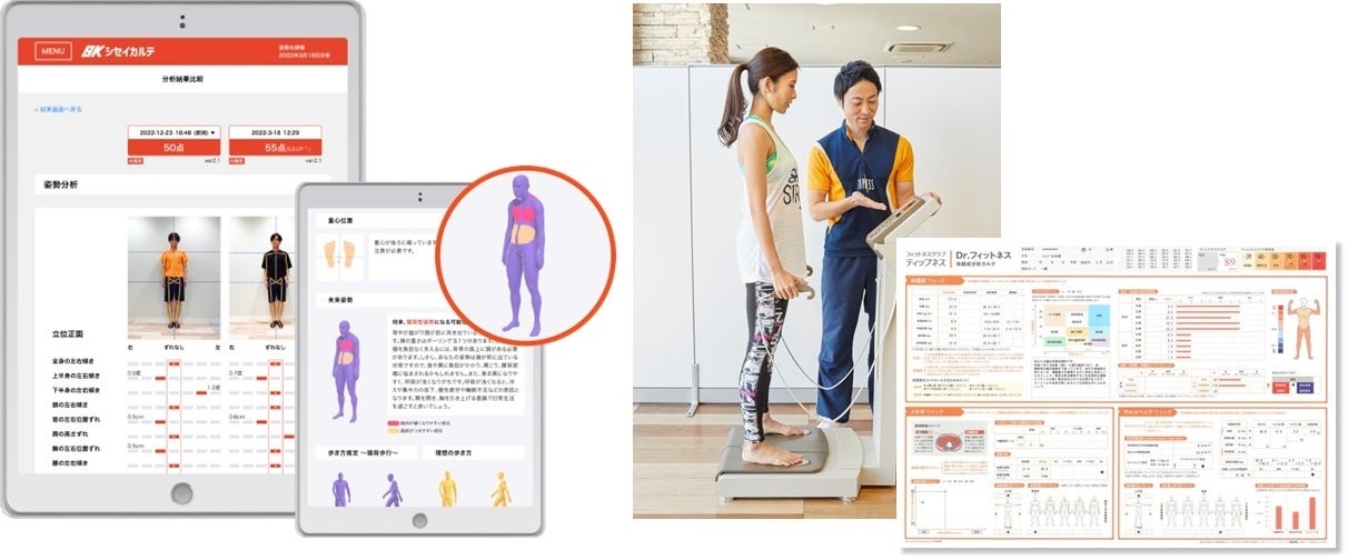ティップネスではこれまで、体脂肪量・筋肉量などの体組成による詳細分析カルテ「Dr.フィットネス」を提供してきましたが、「シセイカルテ」の導入により、利用者に自らの姿勢への気づき・改善を促すことで、より効率的なサポートを目指します。また新規入会者へは、「Dr.フィットネス」と「シセイカルテ」を併用した独自のカラダ診断&カウンセリングサービスとして「ティップネス定期カラダ解析」を無料で提供し、一人ひとりの理想のカラダづくりをナビゲートしていきます。