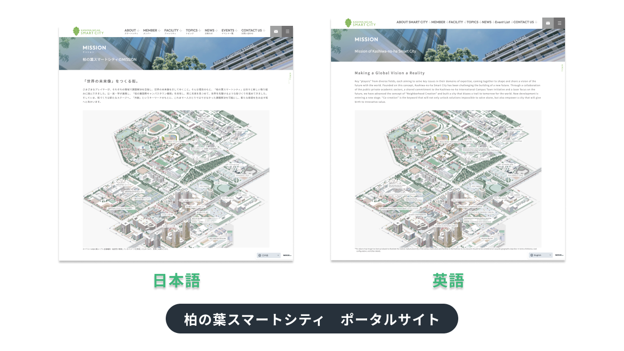 「世界の未来像」をつくる街、柏の葉スマートシティ、ポータルサイトを WOVN で英語対応