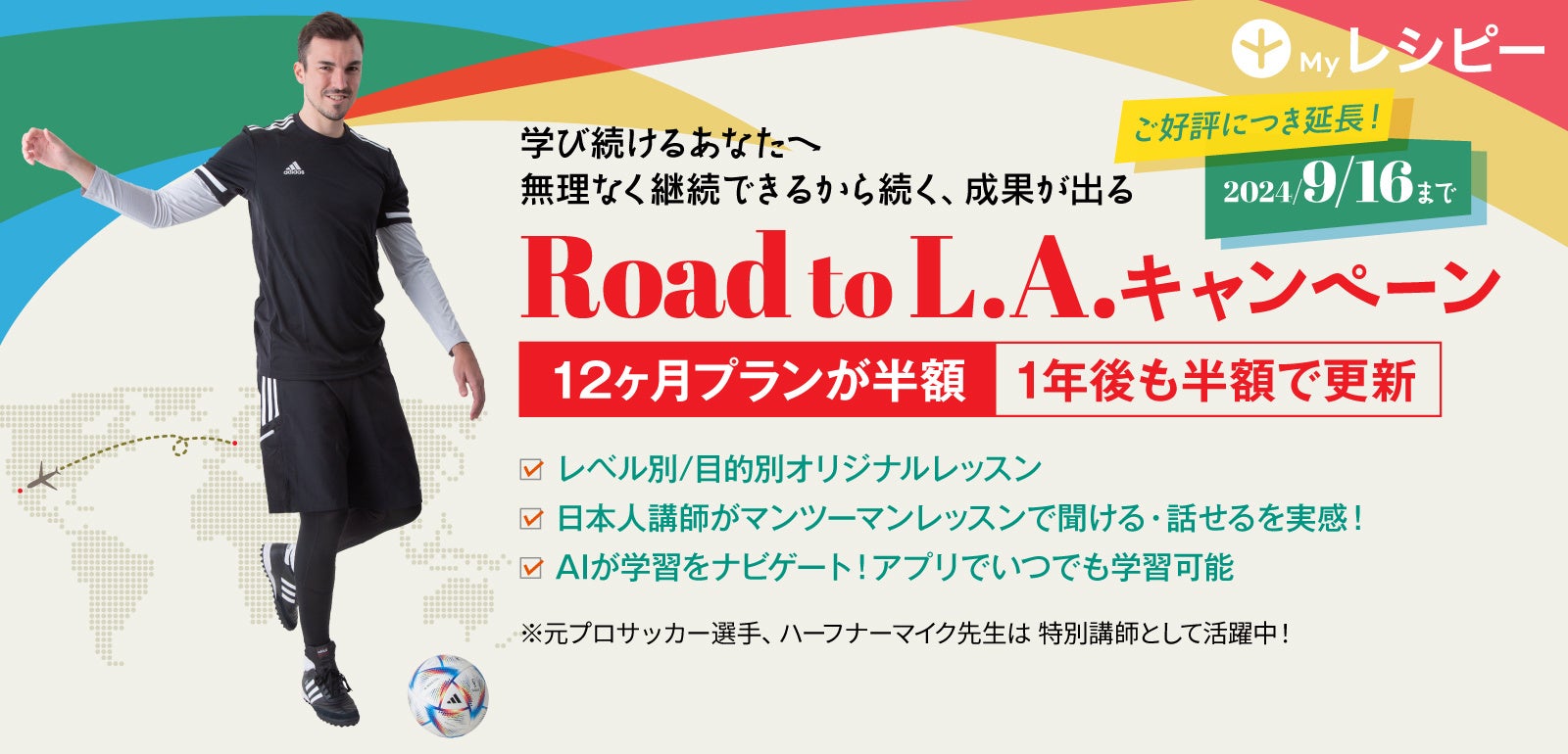 【ご好評につき延長】年間プラン半額提供!ハーフナーマイク先生ともレッスン可能な Road To L.A. キャンペーン開催中! - 株式会社ポリグロッツ - 2024年9月16日(月・祝)まで!