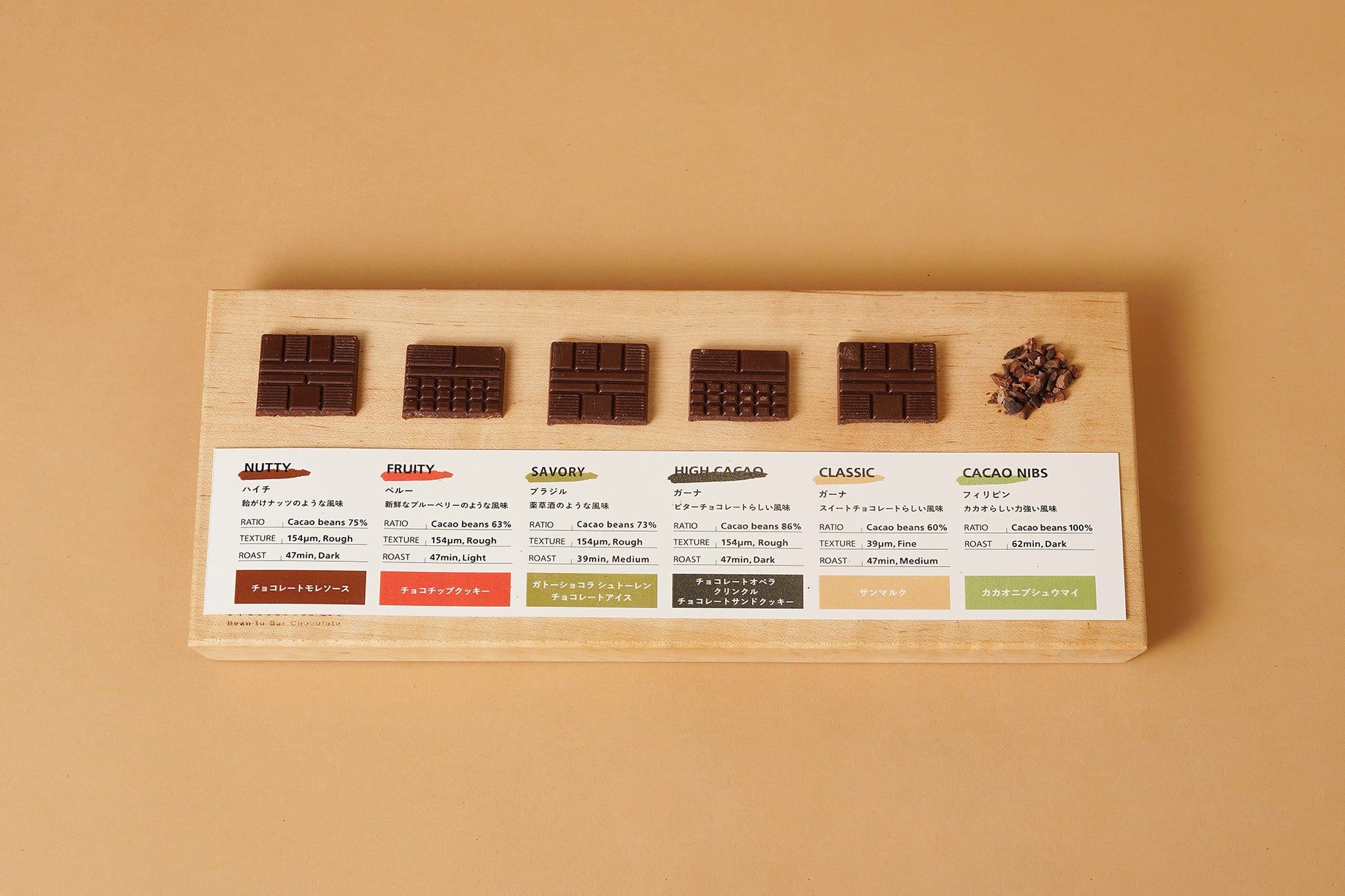 (NUTTY、FRUITY、SAVORY、HIGH CACAO、CLASSIC、CACAO NIBs)