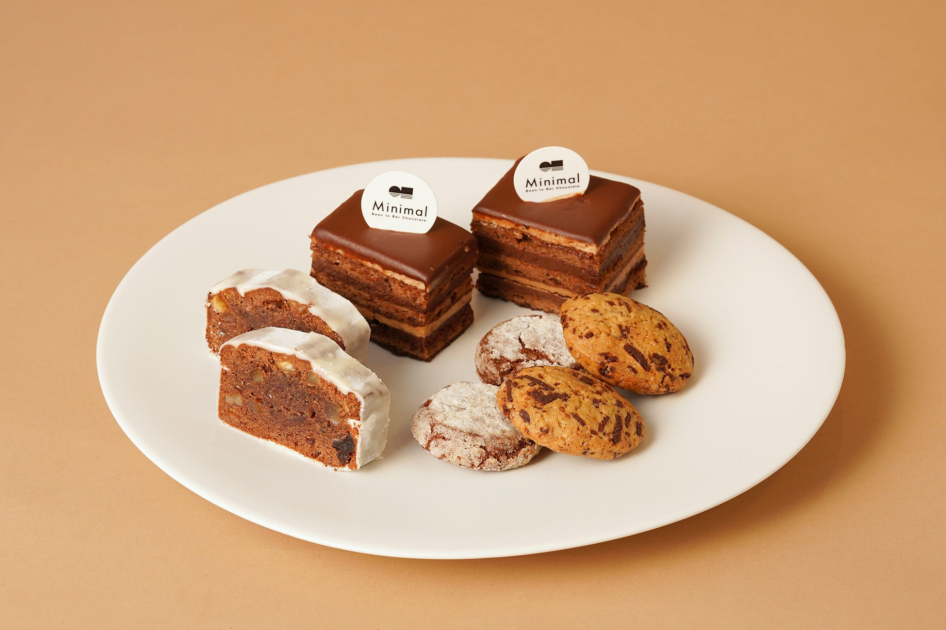 カカオ・チョコレートの魅力をぎゅっとまとめた、Minimalならではのアフタヌーンティーがクリスマス仕様になって登場です。クリスマスらしいシュトーレンやサンマルクなど、11種のスイーツとセイボリーには全てカカオ・チョコレートを使用。さらにカカオ豆からチョコレートを手づくりする