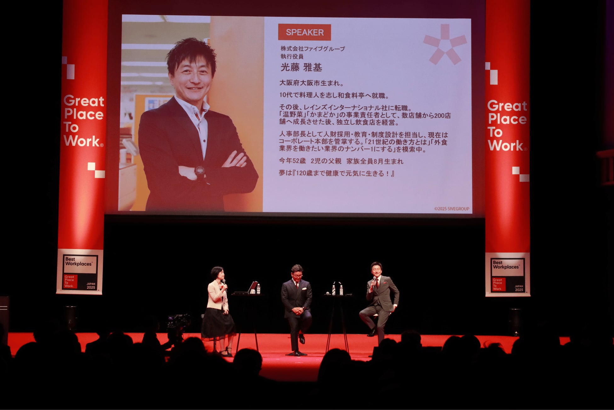 株式会社ファイブグループが、2025年版日本における「働きがいのある会社」ランキングにて、3年連続で飲食業界1位を受賞!