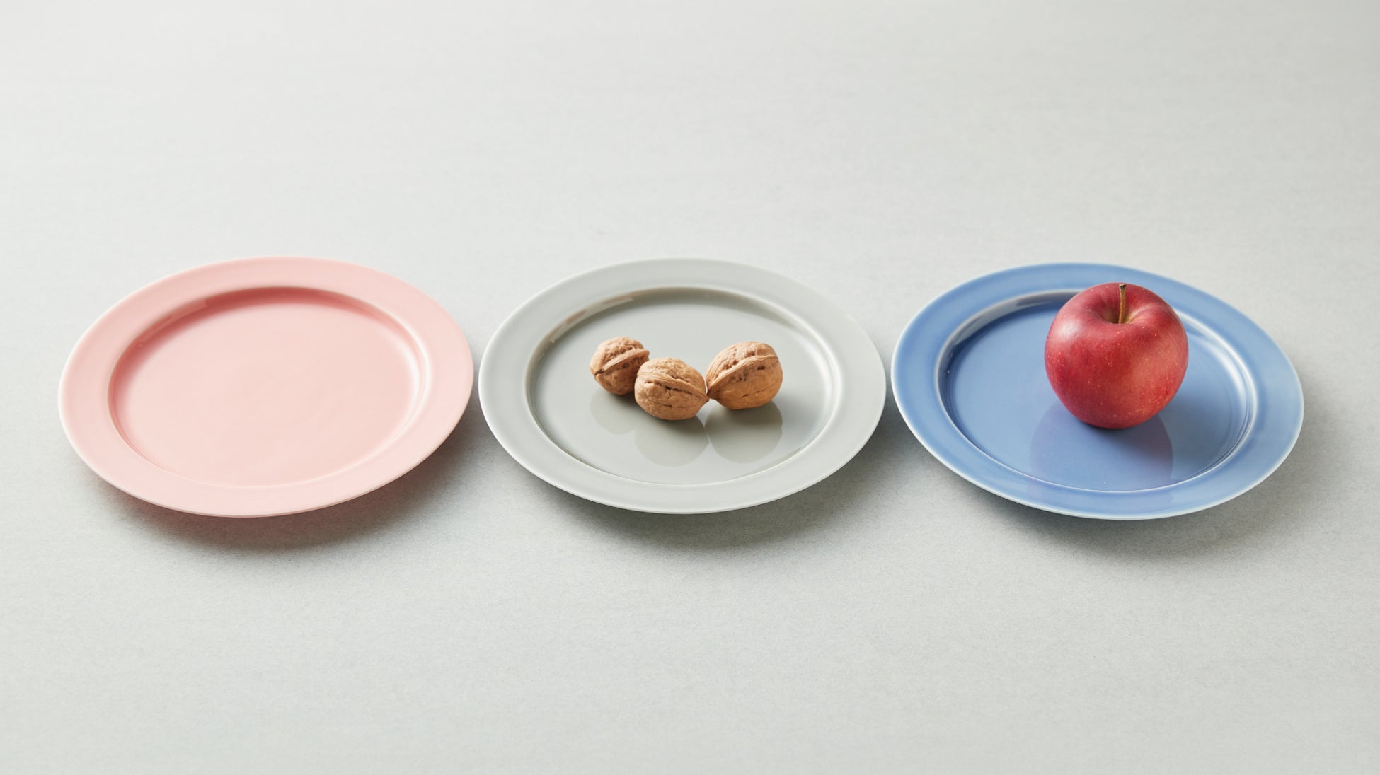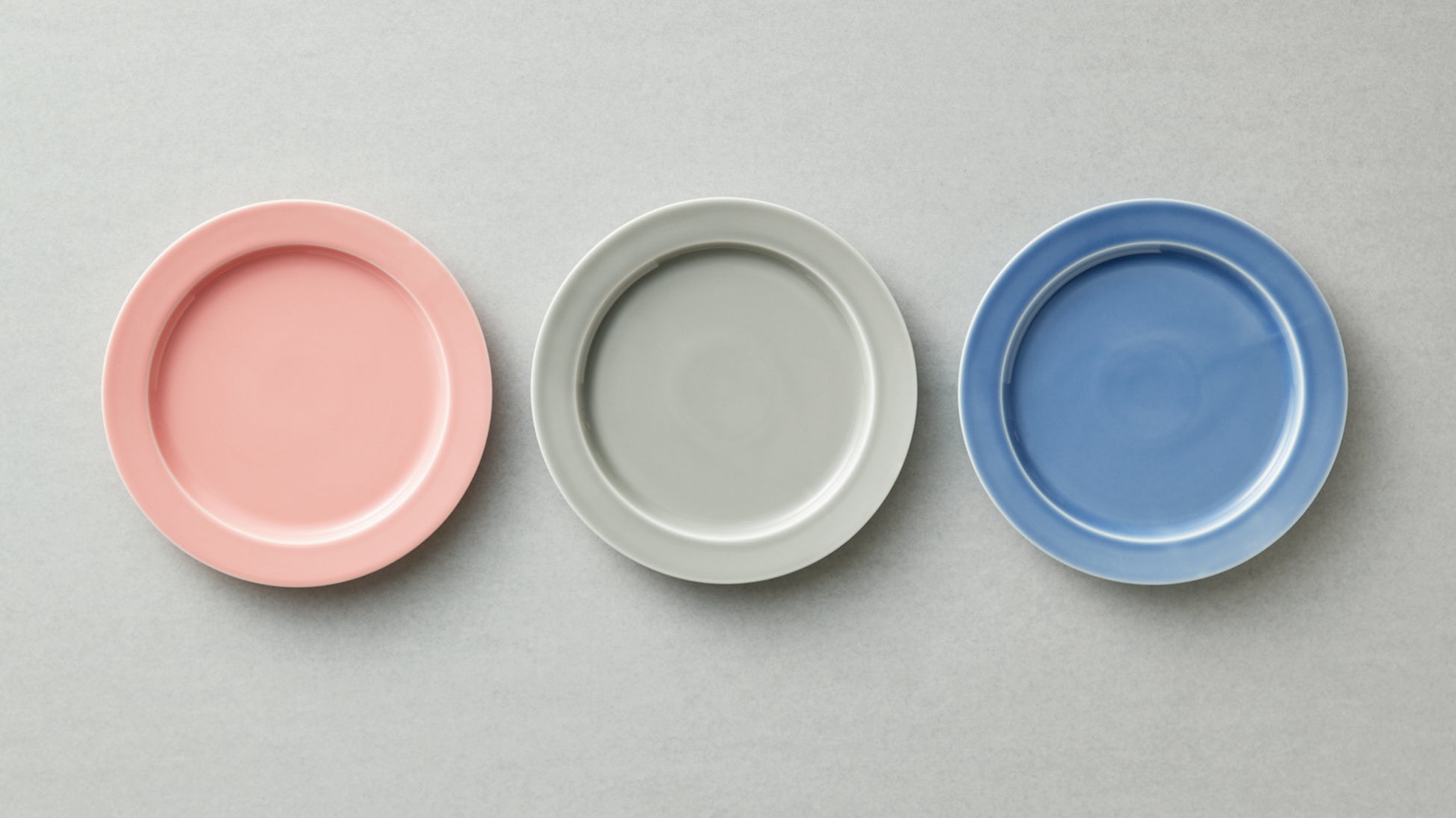 第2弾となる今回は、「毎日の食卓を彩り、楽しい気持ちになりますように」という想いを込めて、「yumiko iihoshi porcelain」のスタンダードコレクション「unjour(アンジュール)」シリーズより、ファミリア別注のプレート2種類を製作。それぞれ、植物のお花や葉の色から名前をつけたコラボレーション限定のオリジナルカラー「マーガレット・ピンク」、「サントリナ・グレー」、 「デージー・ブルー」の3色で展開いたします。
