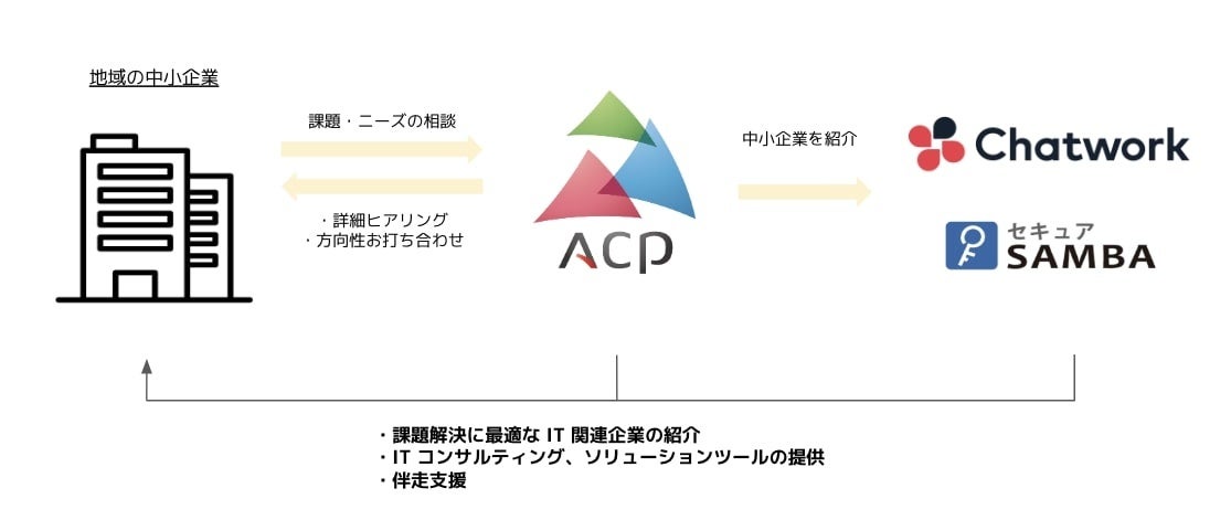 これにより青森県を中心とする地域の中小企業は、あおもり創生パートナーズIT・DX支援(通称:A-DX)を通じて、「Chatwork」および「セキュアSAMBA」※のサービス提供を受けることができます。