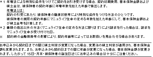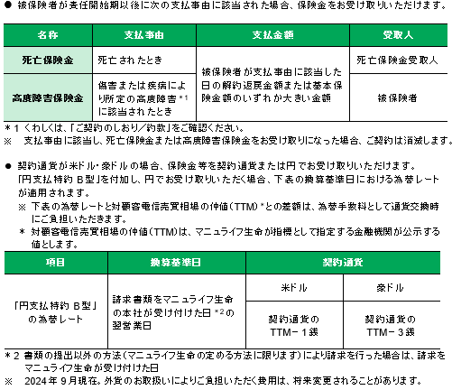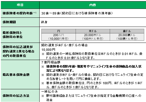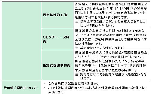 <通貨選択型一時払終身保険『マニュライフ終身保険〈円建/外貨建〉』 別紙>