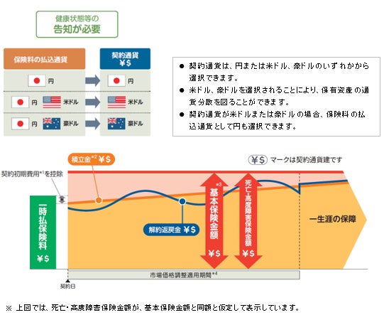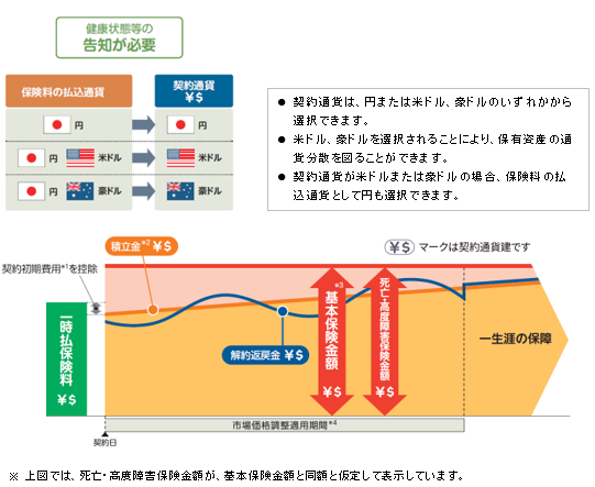 ・ 契約通貨が米ドルまたは豪ドルの場合、保険料の払込通貨として円も選択できます。