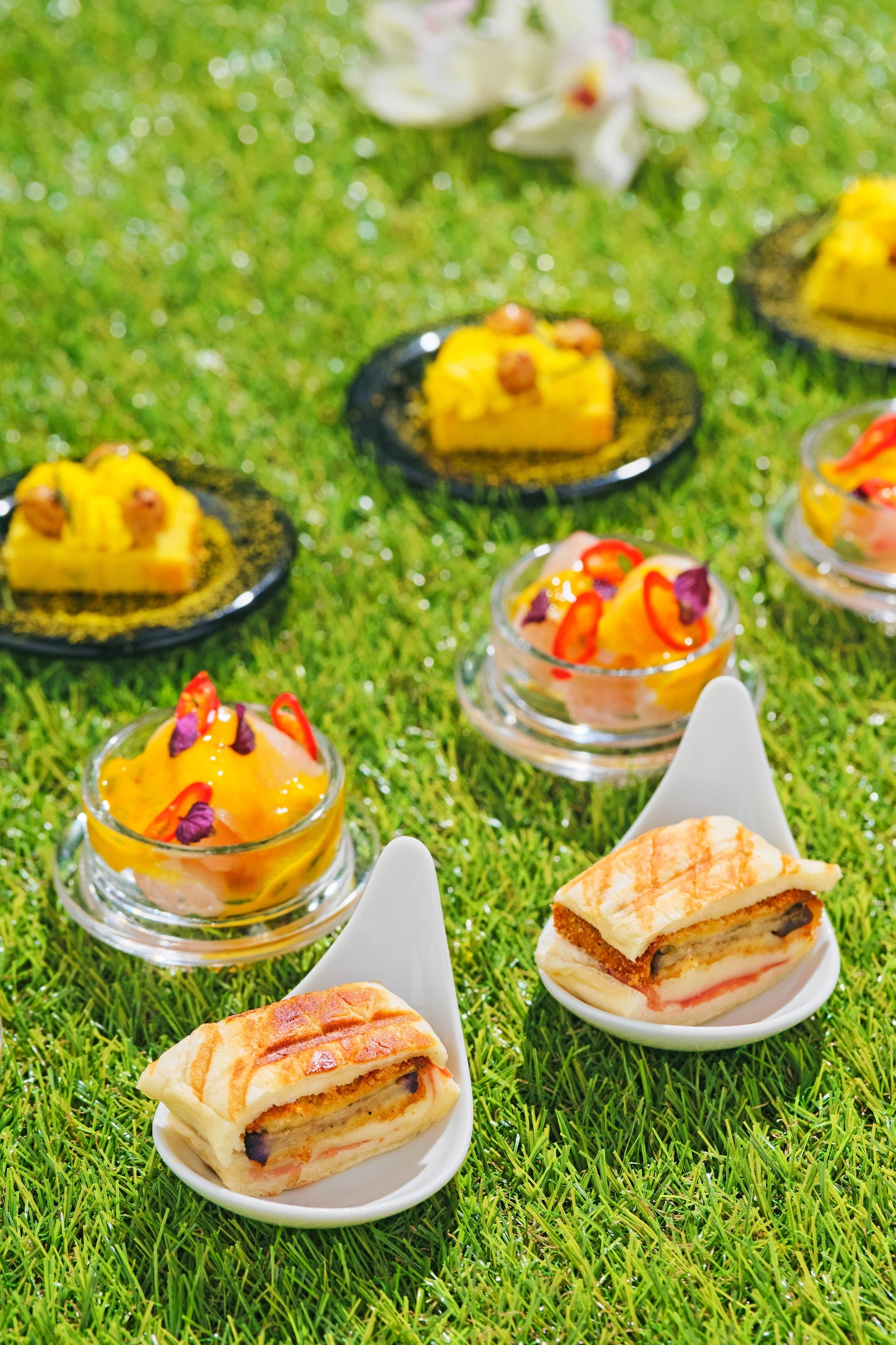 パリのフレグランスメゾン「グタール」を代表するフレグランス「プチシェリー」からインスピレーションを受け、香りの世界観を表現したスイーツは、鮮やかなビタミンカラーが夏気分を盛り上げます。スピンによるアートのように美しいフラワーアレンジメントから創造する彩り豊かな前菜に、メロディアの旬の味わいを詰め込んだ7種のメインディッシュ。3ブランドのコラボレーションによる贅沢なランチタイムをお愉しみください。
