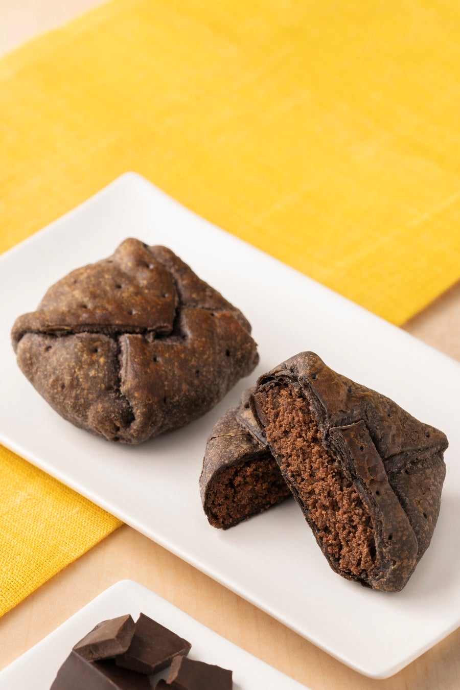 北海道産小豆を使い、ベルギー産のカカオ分72%のダークチョコレートを練りこんだまろやかな皮剥ぎ餡を、職人が丁寧に練り上げるさっくりしたココアのパイ生地で包みました。