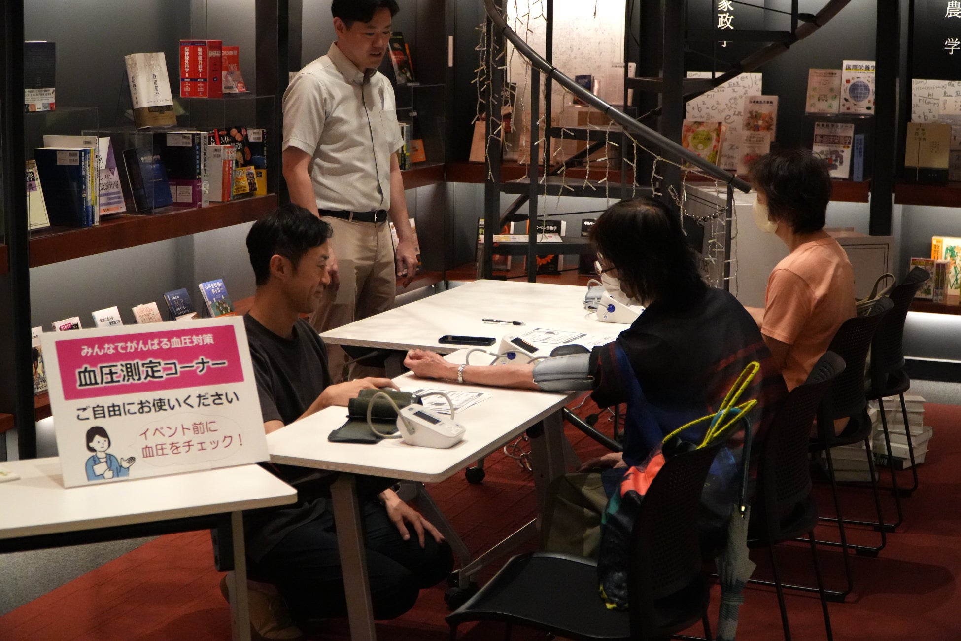 毎回、会場には血圧測定ブースを設けました。毎日血圧を測っている方もいらっしゃれば、血圧計は持っているけれども継続することができないという方もいらっしゃいました。今回のイベントをきっかけに久しぶりに血圧を測定した方も多く、ご自身の血圧値を再確認していただく機会となりました。また、CureAppが開発・販売を行う高血圧治療を支援するアプリ「高血圧治療補助アプリ」のデモ体験ブースも設け、実際に来場者に触っていただきました。