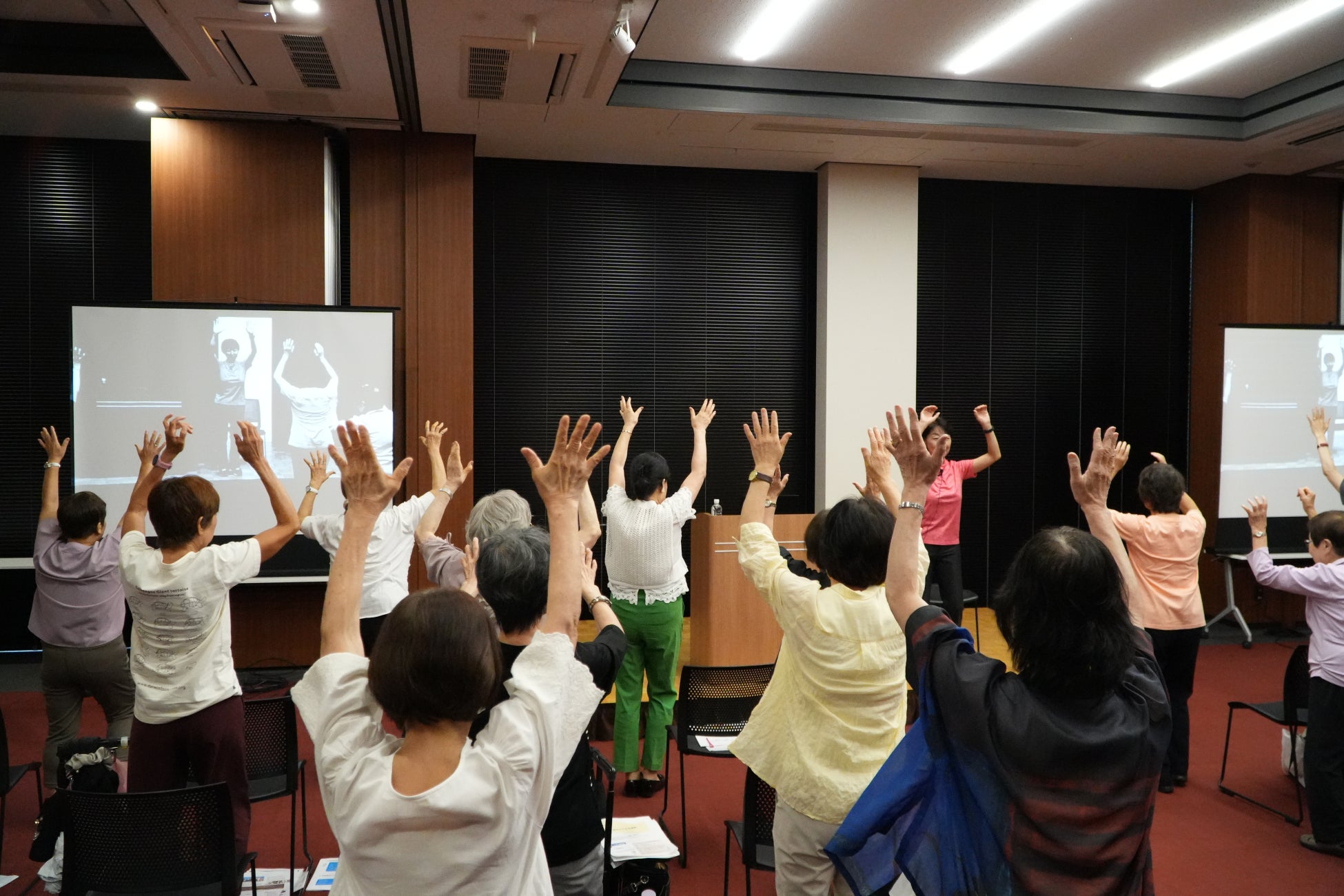 高血圧の方への指導経験も豊富な健康運動指導士である黒田恵美子氏が、日常生活のなかで簡単に取り入れられる運動や、安全にできる運動のポイントを楽しく解説。会場内を正しい姿勢で歩くなど実技指導もあり、大変盛り上がりました。皆さま、日常のなかで運動を継続するためのヒントを持ち帰っていただきました。