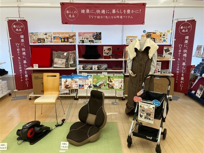 プライムダイレクトのバリューに「楽しく、健康に生きる」があります。それを伝える場として“楽しく、健康に生きている方々”が集う聖域とも言える手芸専門店を選択しました。それに基づき、取り扱い商品も日々を楽しく生きるために生活を便利にするショッピングカート「EcoCa(エコカ)」や、料理を楽しくするスクエア型フライパン「シカクック」、さらに健康にハンドクラフトを楽しむための「腰楽ストレッチ座椅子 グイッス」など全16品を取り揃える予定です。(店舗によって取り扱い品数は異なります)TVショッピングで見た商品に実際に触れて、試せるこの場で当社のバリューを実感していただくことを目指します。