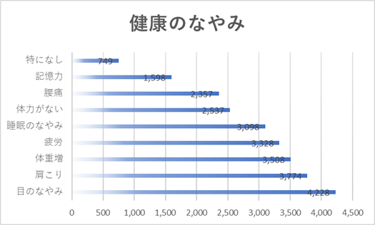 クラフトハートトーカイ会員様向けに実施した「手芸とライフスタイルについてのアンケート」の結果で、趣味である手芸を楽しみながらも、肩こりや運動不足による体重増など、たくさんのお客様が健康に関するお悩みをお持ちであることがわかりました。(参考:*1)