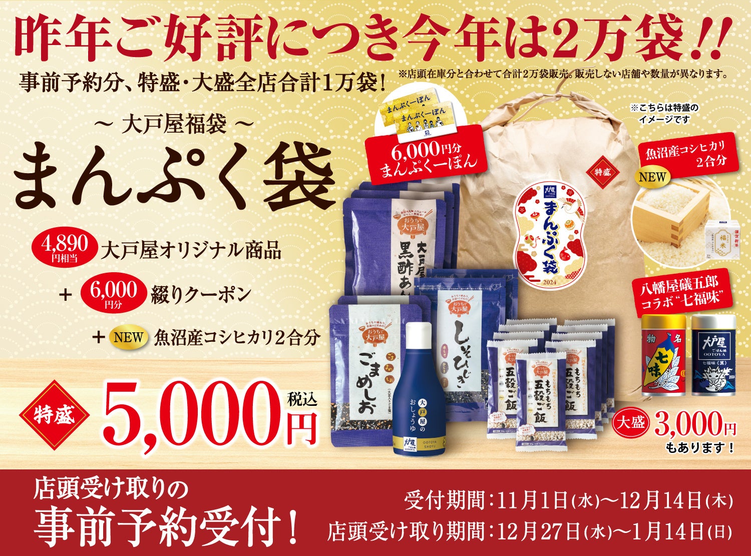 大人気の大戸屋「まんぷく袋」は今年も更にパワーアップ!12月27日(水)から1万袋限定で店頭販売スタート!