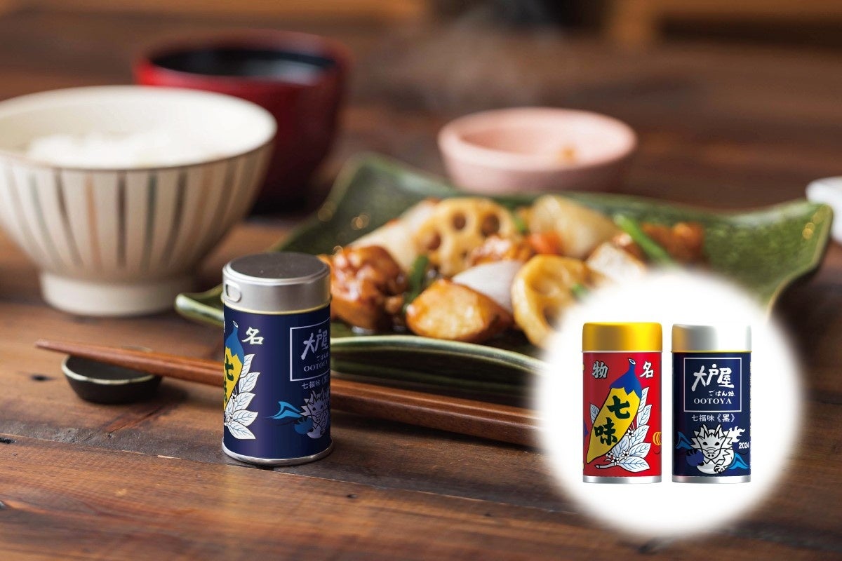 日本三大七味である長野県の善光寺名物“八幡屋礒五郎”とコラボした、大戸屋オリジナルデザイン缶の七味。2個セットの干支をデザインした、七福味「赤」と七福味「黒」が専用化粧箱に入った、この時期ならではの限定商品です。