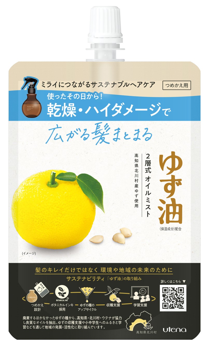 「ゆず油」シリーズは、高知県北川村で捨てるほかなかったゆずの種から抽出したオイルを配合したサステナブルなヘアケアシリーズです。髪の広がる要因に合わせて「ヘアオイル」「オイルミスト」から選べるラインナップで、2025年2月にはシリーズ累計出荷個数720万個を突破*するなど多くのお客様にご愛用いただいております。