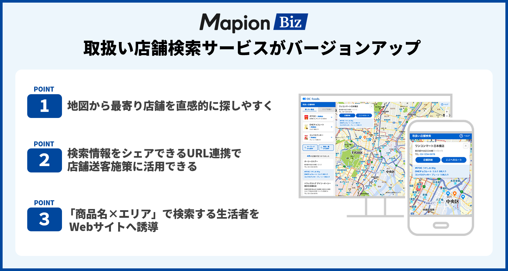 Mapion Biz、取扱い店舗検索サービスがバージョンアップ