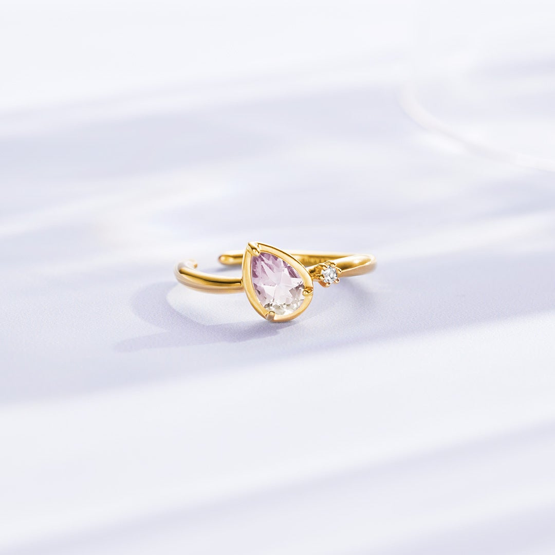 アメシストのパープルからシトリンのイエローへのグラデーションが美しいアメトリンを、色の変化が幻想的なバタフライピードリンクに見立てたシリーズ。ミステリアスなストーンの輝きが、普段の装いにエレガントさをプラスしてくれるはず。