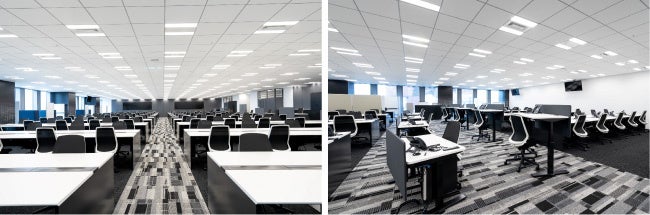 福岡市内の中心地である地下鉄天神駅直結の新センターは、商業テナントや飲食店を利用できる通勤アクセスと利便性を兼ね備えたオフィスビル内にあります。無柱空間構造オフィスのため、クライアント企業様の要件にあわせてセキュリティ区画を可変でき、また、昇降デスクを採用したSV(スーパーバイザー)とマネージャー席を中央・扇形に配置した運用室は、コンタクトセンター運用の全体を把握・管理することにより効率・品質を高めた運用を実現しています。