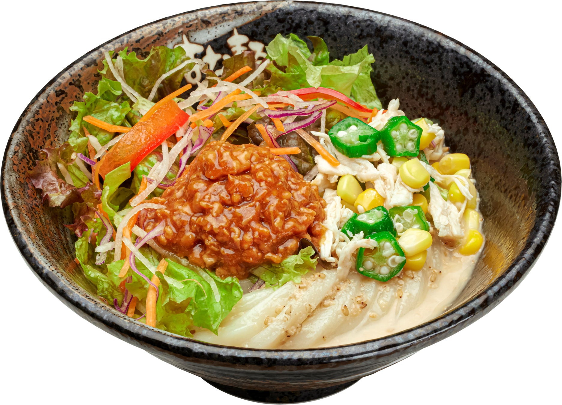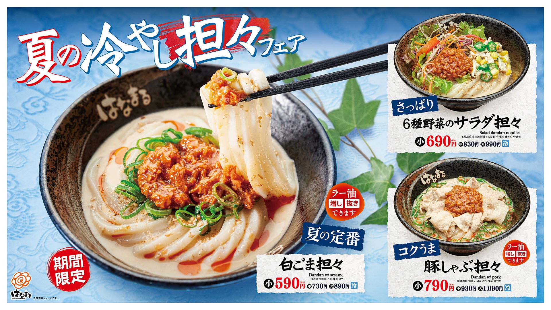 \はなまる夏の1番人気、冷やし担々を期間限定発売!今年は定番の白ごま担々に加え、6種野菜のサラダ担々、豚しゃぶ担々が新登場!/
