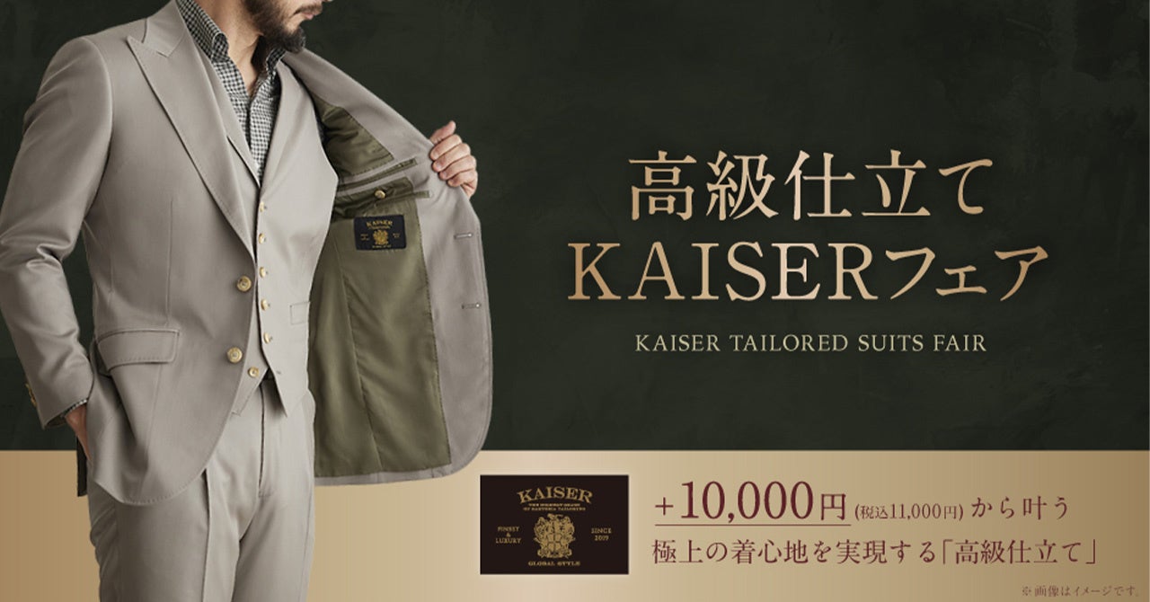 オーダースーツ専門店グローバルスタイルが、熟練職人の縫製によるオリジナルモデルがお得になる【高級仕立てKAISERフェア】を刷新。