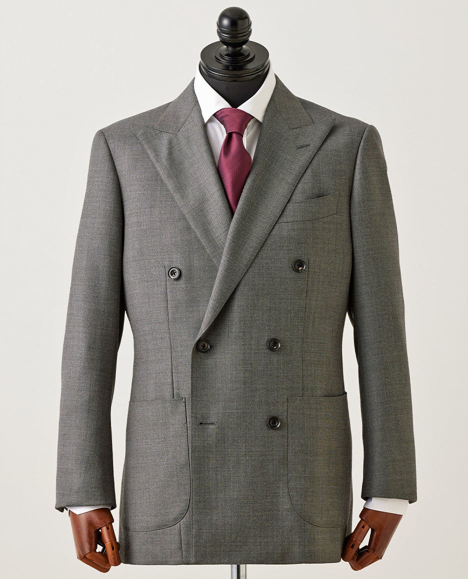 ダブルの特徴であるワイドなピークドラペルや分量間のあるシルエットは、着るだけで威厳と格式を演出します。
