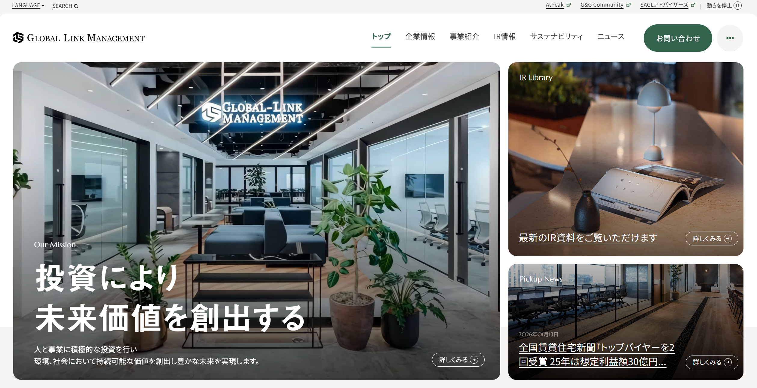 投資用不動産を扱う株式会社グローバル・リンク・マネジメント(本社:東京都渋谷区、代表取締役社長:金 大仲、証券コード:3486)は、日興アイ・アール株式会社(以下、「日興アイ・アール」)による「2025年度全上場企業ホームページ充実度ランキング」にて「総合部門 優秀サイト」に初めて選出されたことをお知らせいたします。